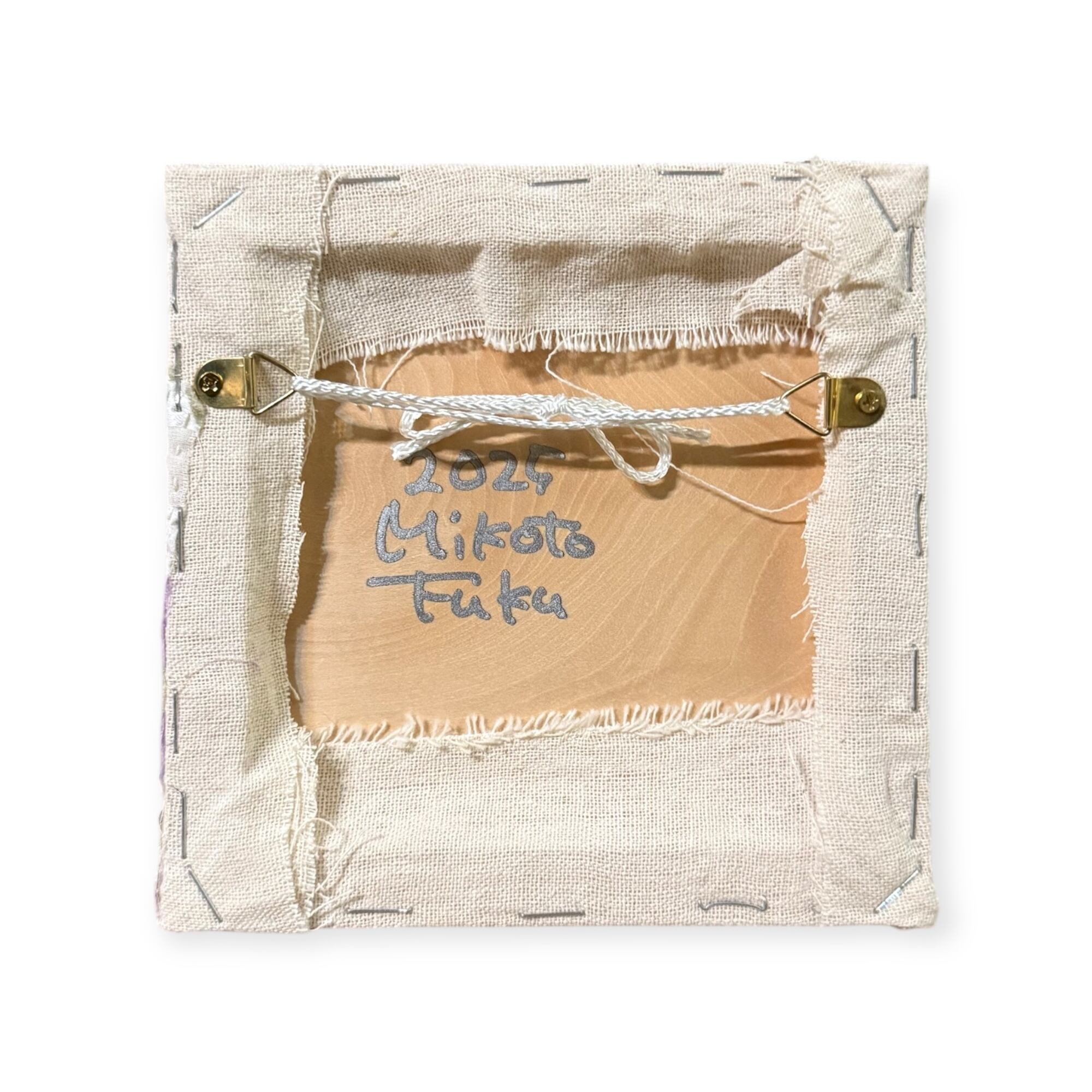 「flower シリーズ」原画、15㎝×15㎝、木製パネル、刺繍、ミクストメディア、コラージュ、ミニアート、額なし(吊り紐あり)